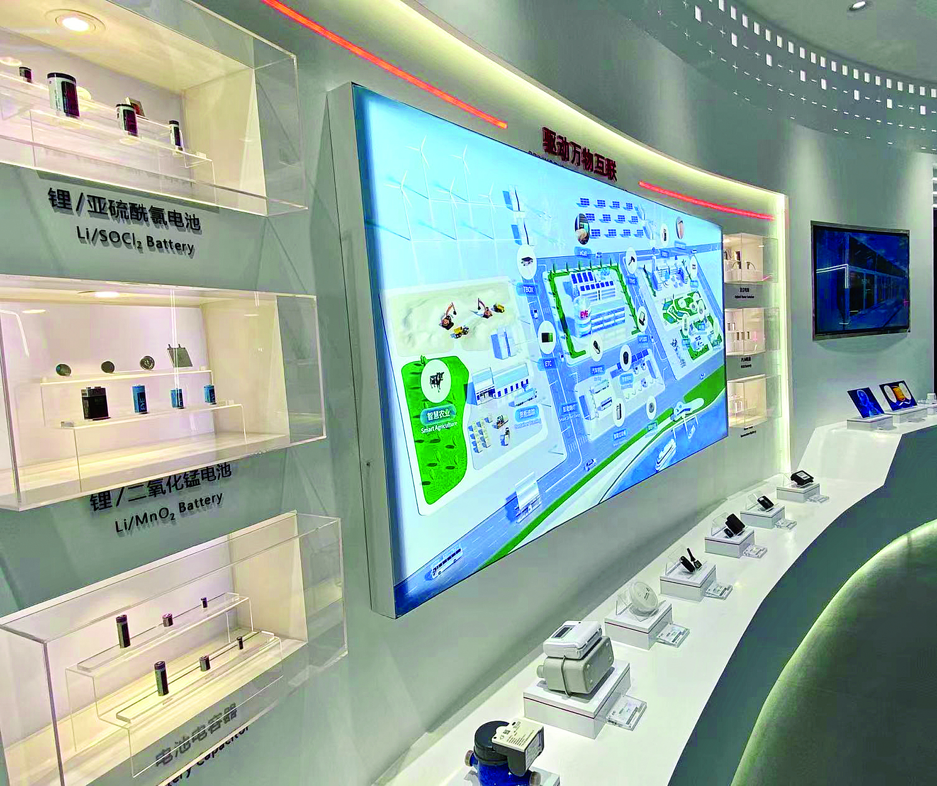 億緯鋰能展廳內(nèi)展示的鋰/二氧化錳電池。