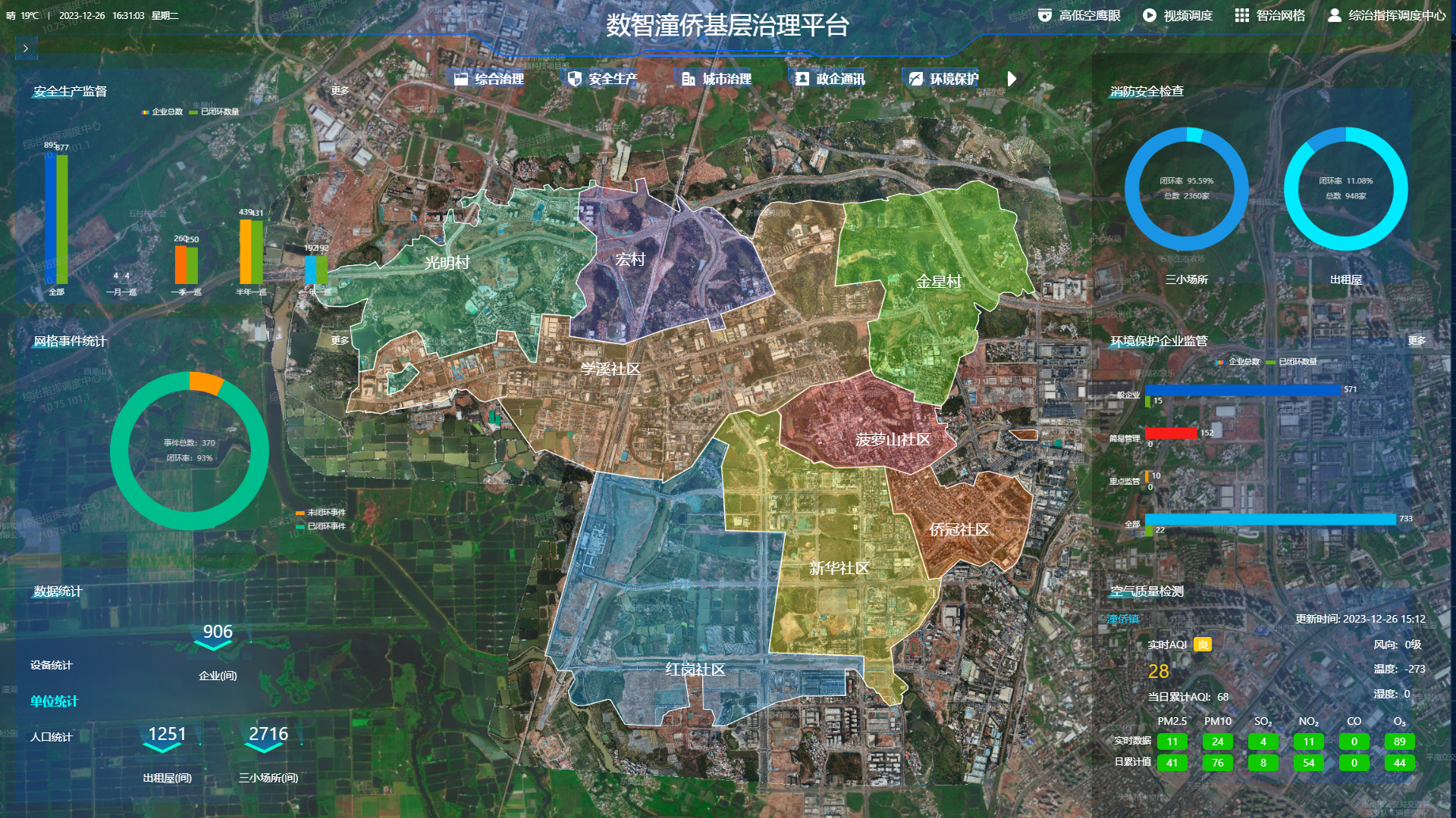在潼僑鎮(zhèn)綜治中心,記者看到了“數(shù)智潼僑”基層治理平臺:幾近占滿整面墻的大屏幕上,清晰地顯示著潼僑全域地圖,可以看到空氣質(zhì)量監(jiān)測、安全生產(chǎn)檢查、設(shè)備運(yùn)行等實(shí)時(shí)數(shù)據(jù)。
