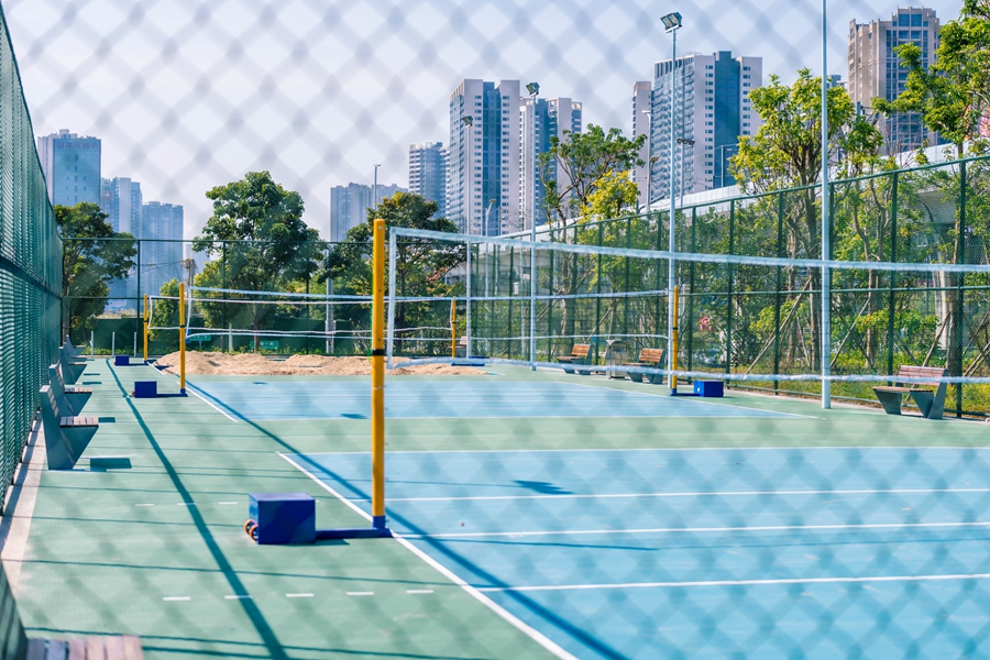 公園配套有足球場(chǎng)、籃球場(chǎng)、沙灘排球場(chǎng)、排球場(chǎng)。