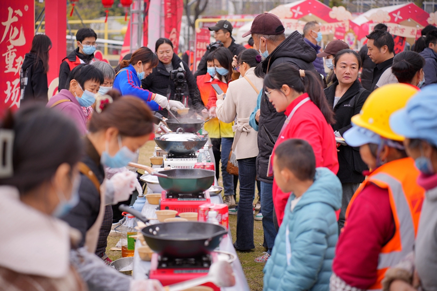 與此同時,現(xiàn)場舉辦游園會尋寶集章、手工互動、美食小吃、刀切粄美食制作比賽、制作非遺抬龍轎模型體驗、推廣非遺文創(chuàng)產(chǎn)品等各類互動游戲,吸引了眾多群眾參與體驗,有效地促進了非遺項目與傳統(tǒng)節(jié)日深度融合,營造了歡樂吉祥的節(jié)日氛圍。
