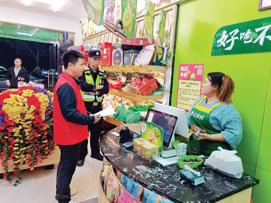 在巡邏過程中,巡邏隊伍以步巡為主、車巡為輔,針對轄區(qū)內(nèi)的民房、商鋪、公共復(fù)雜場所等進行了全面的治安巡邏,排查各類潛在的不穩(wěn)定因素。同時對經(jīng)營場所開展消防器材檢查,要求門店負責(zé)人提高安全意識,防范和減少火災(zāi)事故的發(fā)生。