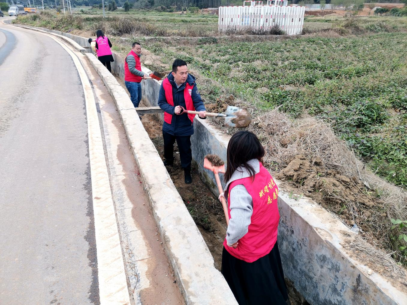 在潼湖鎮(zhèn)玳瑁村活動現(xiàn)場,鎮(zhèn)村干部、志愿者及村民共計30余人,大家手持鐵鏟、鋤頭等工具,對堵塞河道支流灌區(qū)、農(nóng)田灌排溝渠、房屋門前溝渠的淤泥、石塊等雜物進行鏟除和清理。經(jīng)過共同努力,原本存在垃圾漂浮物的農(nóng)村水塘河道、淤泥雜物堆積的溝渠變得潔凈、暢通。據(jù)悉,此次行動共清理溝渠長度約600米,修復了溝渠排灌功能,有效保障約720畝農(nóng)田的灌溉生產(chǎn)用水,為群眾耕種灌溉提供了有力保障。