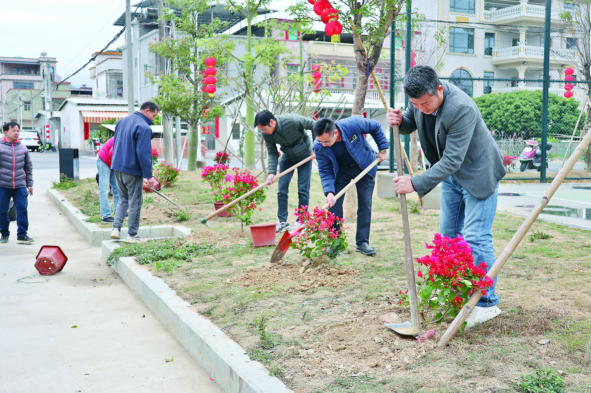 企業(yè)捐款植樹種綠 鄉(xiāng)賢免費(fèi)更換時(shí)花