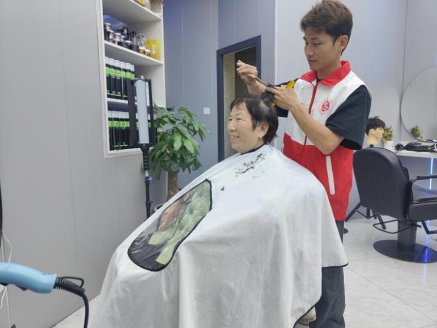 “合伙人”阿凱免費(fèi)給老人理發(fā)。 惠州日?qǐng)?bào)記者邱舒婷 通訊員莊碧雯 攝
