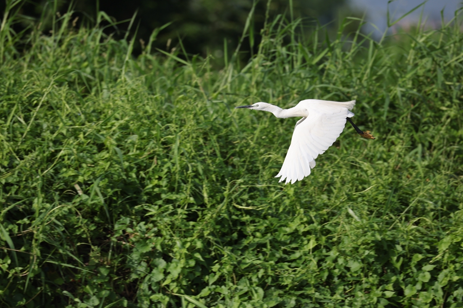 鏡頭下,紫水雞從岸邊的蘆葦叢飛向位于平塘湖中心的鳥類棲息地。振翅之間,紫藍(lán)色的羽毛在陽光下閃耀出金屬般的光澤。“太幸運了,這是今年第二次拍到紫水雞了!变䥽覞竦毓珗@管護中心相關(guān)負(fù)責(zé)人說。除了紫水雞,記者還發(fā)現(xiàn)有白腰文鳥、黃腹山鷦鶯、蒼鷺、白鷺、褐翅鴉鵑、黑水雞等珍稀鳥類。天藍(lán)、地綠、水清、鳥飛,共同繪就了潼湖濕地之美。