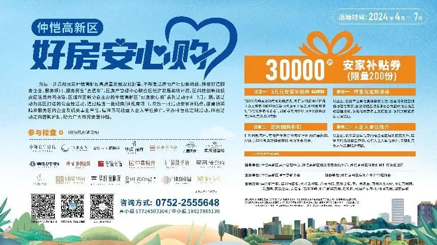 同時,為滿足廣大市民剛性及改善性住房需求,減輕購房壓力,仲愷高新區(qū)“好房安心購”系列活動嚴(yán)格執(zhí)行相關(guān)優(yōu)惠政策!3萬元購房補貼券”正在持續(xù)發(fā)放,團購優(yōu)惠折扣也在有序洽談,19個“五證”齊全的現(xiàn)房(準(zhǔn)現(xiàn)房)樓盤項目均以最大的誠意,盡最大的努力,為廣大市民在仲愷安居送出最多的福利,提供最優(yōu)的便利。此外,“好房安心購”的活動優(yōu)惠還可疊加使用惠州市發(fā)放的“1億元樓市消費券”,補貼升級,更享實惠。