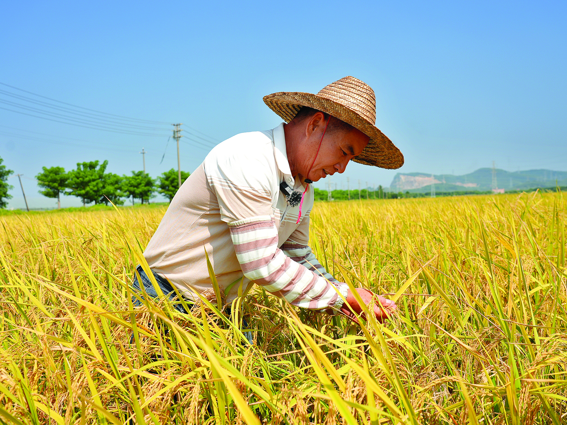 瀝林鎮(zhèn)附近村民楊晚興在合作社帶動(dòng)下,見縫插針種植中季稻。
