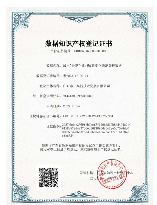 在國家積極探索數據知識產權保護規(guī)則的大背景下,泰一科技率先完成惠州市首批數據知識產權登記。通過登記確權,泰一科技擁有對所登記數據的持有、使用、交易和收益等權利,數據知識產權登記證書成為其數據權屬證明。