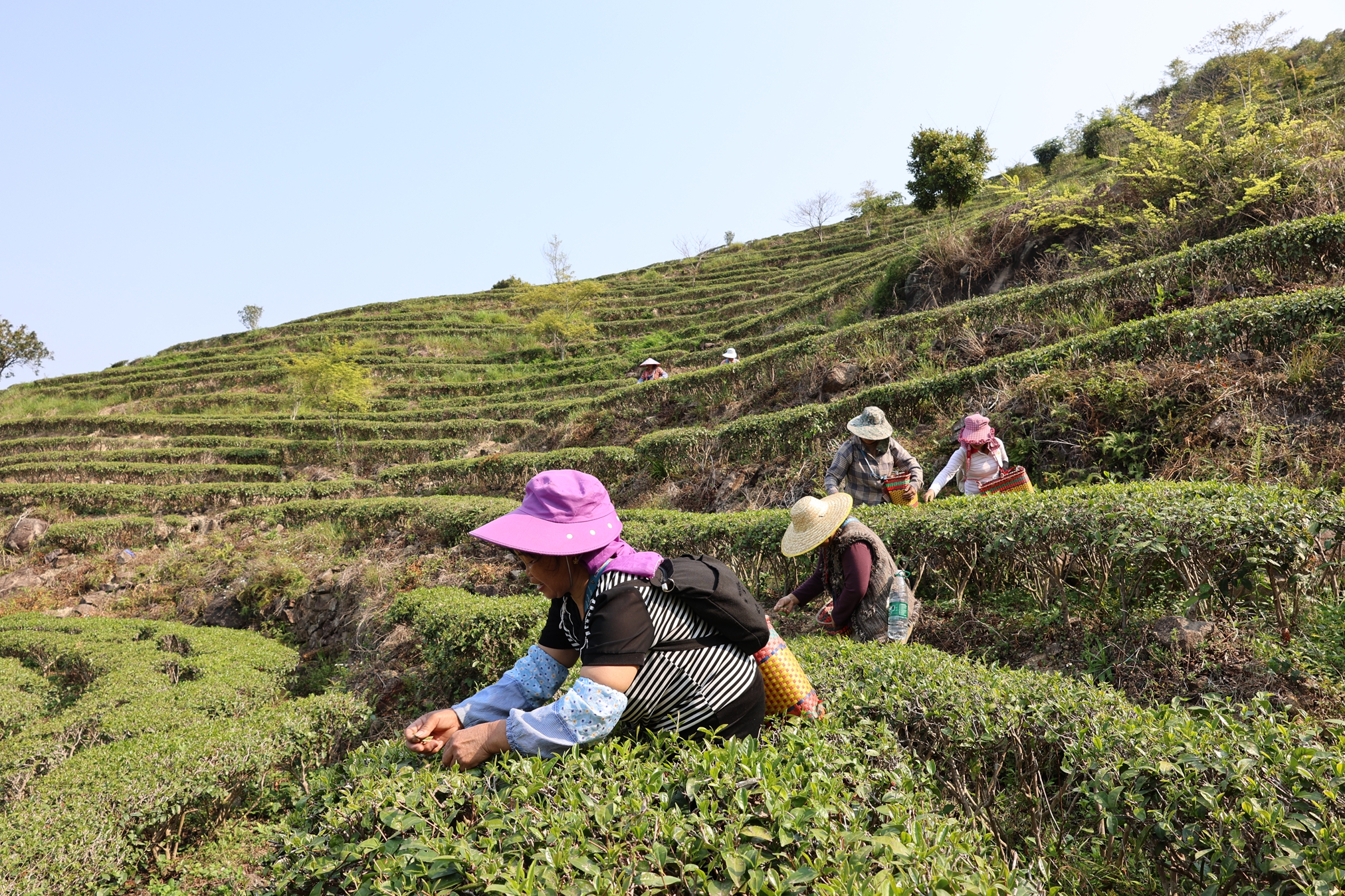 采茶女工們采摘春茶。通訊員陳靜 攝