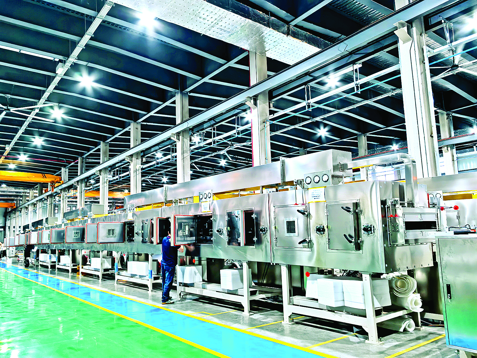 “從2020年首條產(chǎn)線投產(chǎn)至今,我們已建成包括電芯自動(dòng)化產(chǎn)線在內(nèi)的近200條產(chǎn)線,整個(gè)園區(qū)實(shí)現(xiàn)滿產(chǎn)運(yùn)行。”豪鵬新能源科技副總經(jīng)理張來存介紹,2024年,該企業(yè)承接了集團(tuán)部分深圳產(chǎn)能的轉(zhuǎn)移和新產(chǎn)能建設(shè),總產(chǎn)值實(shí)現(xiàn)了新的突破,產(chǎn)品遠(yuǎn)銷歐美、東南亞等國(guó)際市場(chǎng)。面對(duì)園區(qū)滿載現(xiàn)狀,企業(yè)正通過智能化改造挖掘產(chǎn)能潛力!拔磥3年,我們會(huì)不斷提高研發(fā)投入占比,全面提升智能工廠生產(chǎn)效率!睆垇泶嫱嘎。
