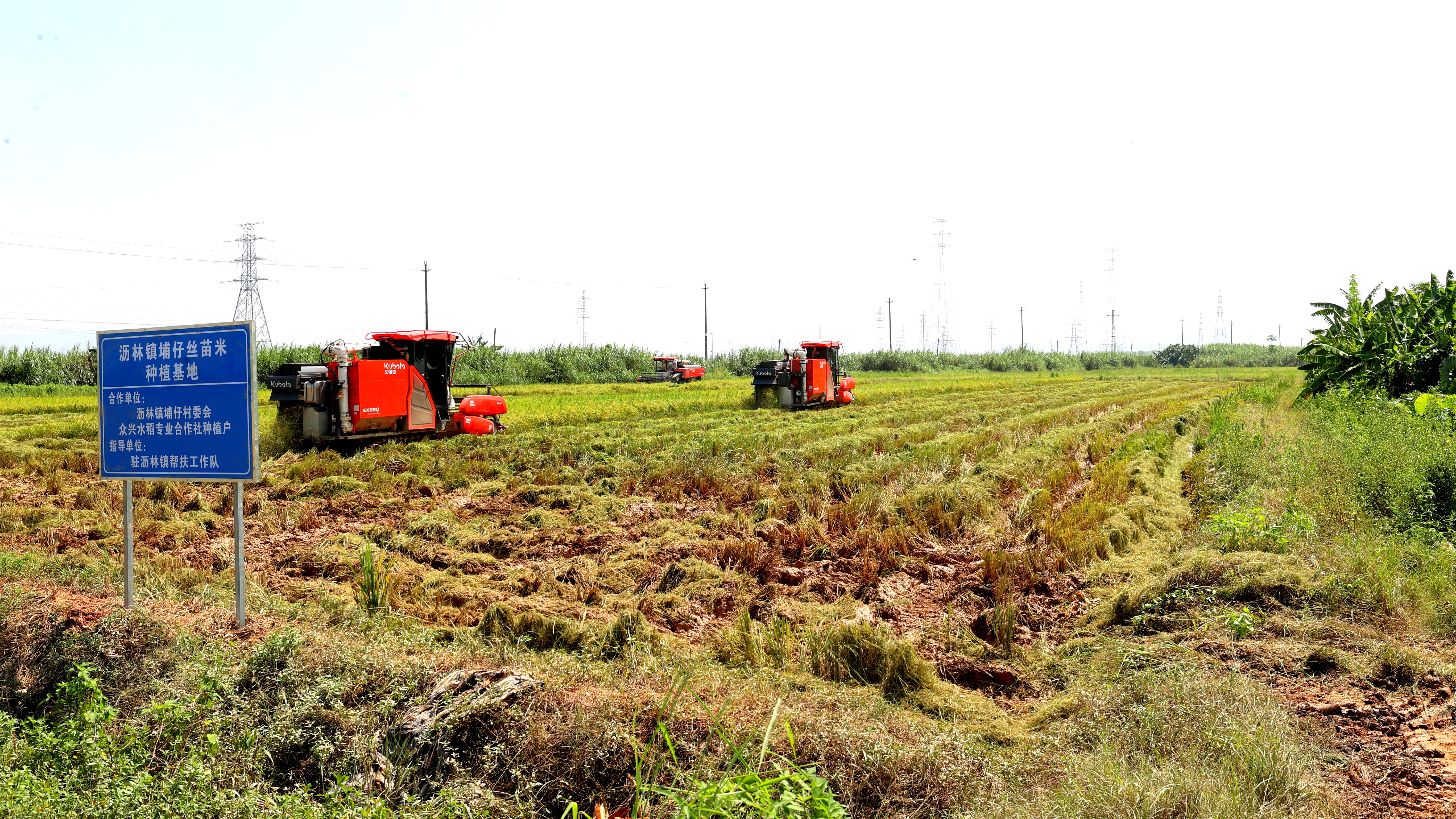 瀝林鎮(zhèn)埔仔絲苗米種植基地一派豐收景象;葜萑請笥浾哏姮| 通訊員劉銘 攝