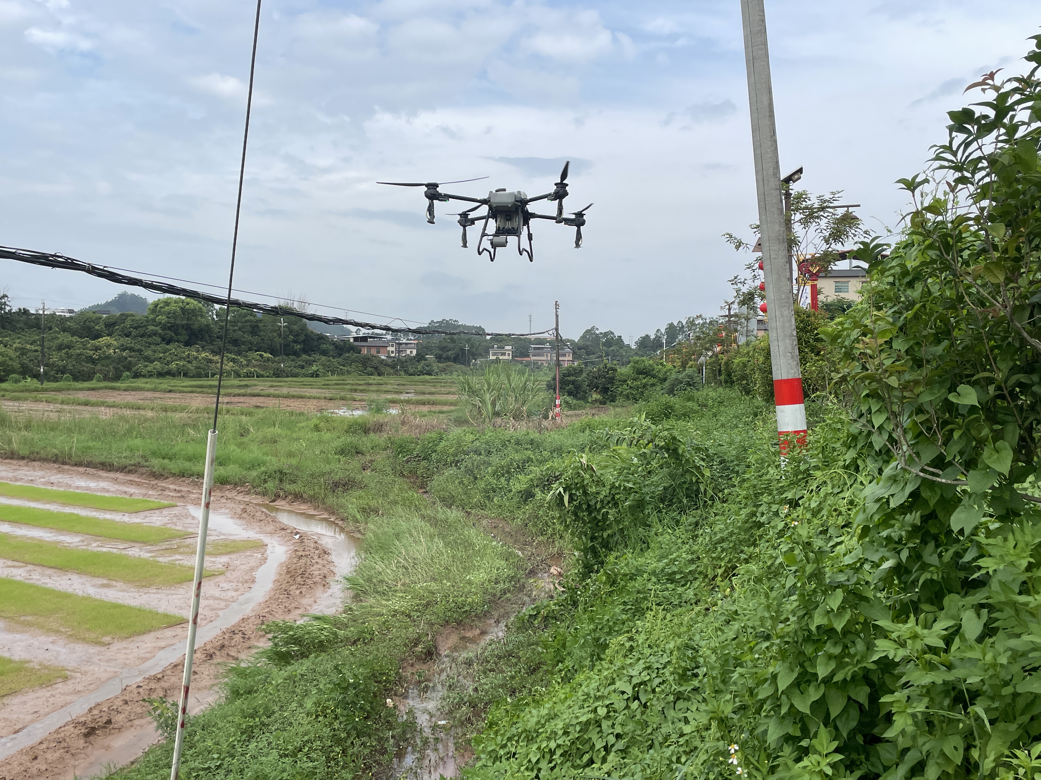“嗡嗡嗡……”在陳江街道幸福村上空,一架無人機(jī)正在執(zhí)行特殊任務(wù)。隨著螺旋槳的轉(zhuǎn)動,滅蚊藥劑被均勻噴灑在屋頂、草叢等人工難以觸及的角落!耙郧斑@些地方靠人工打藥費(fèi)時(shí)費(fèi)力,現(xiàn)在無人機(jī)幾分鐘就搞定!奔夹g(shù)人員介紹,無人機(jī)作業(yè)效率高、覆蓋面廣,極大提升了消殺精準(zhǔn)度。