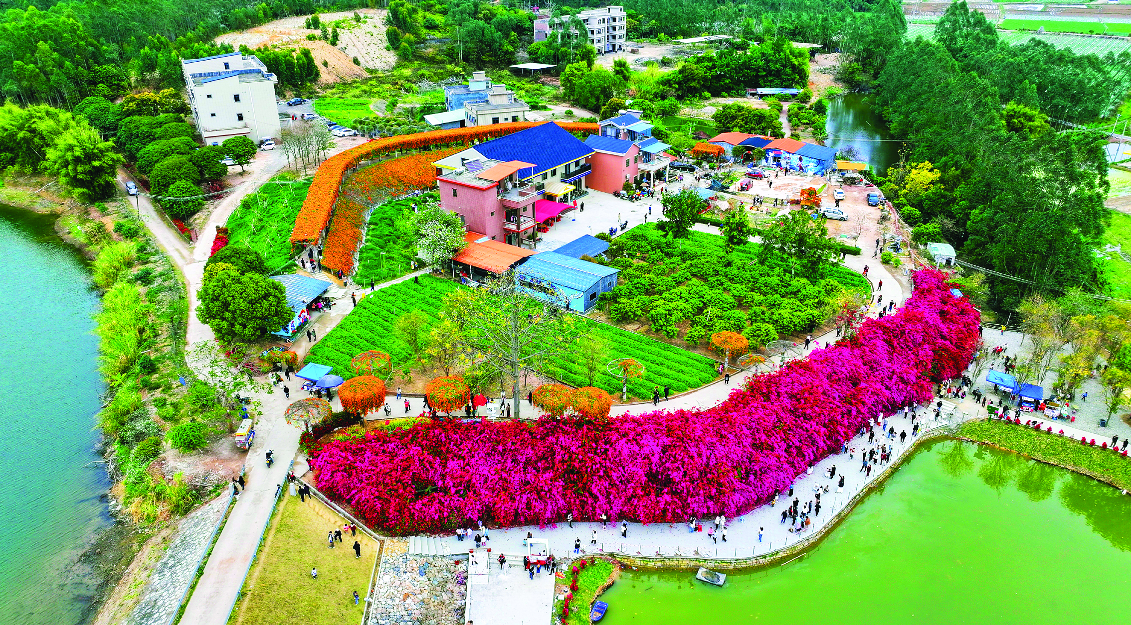 在潼湖鎮(zhèn)黃屋村,三角梅瀑布如霞似錦,這里已成為網(wǎng)紅打卡地!2023年以來,我們年均接待游客10萬人次,帶動村里餐飲、零售等行業(yè)蓬勃發(fā)展!变(zhèn)相關負責人介紹,黃屋村以三角梅瀑布花嶼項目為核心,打造集花卉觀賞、親子采摘于一體的鄉(xiāng)村旅游景點。目前項目一期已投入200萬元,完成石板路、玻璃護欄、臨時商業(yè)區(qū)等建設;二期計劃投入800萬元,流轉土地擴大花海規(guī)模,并配套建設停車場,“建成后預計每年能為村集體增收18萬元!苯酉聛,潼湖鎮(zhèn)還將把花果山、潼湖濕地串成“環(huán)潼湖行”精品文旅路線,讓“打卡流量”變成留住游客的“留量”。