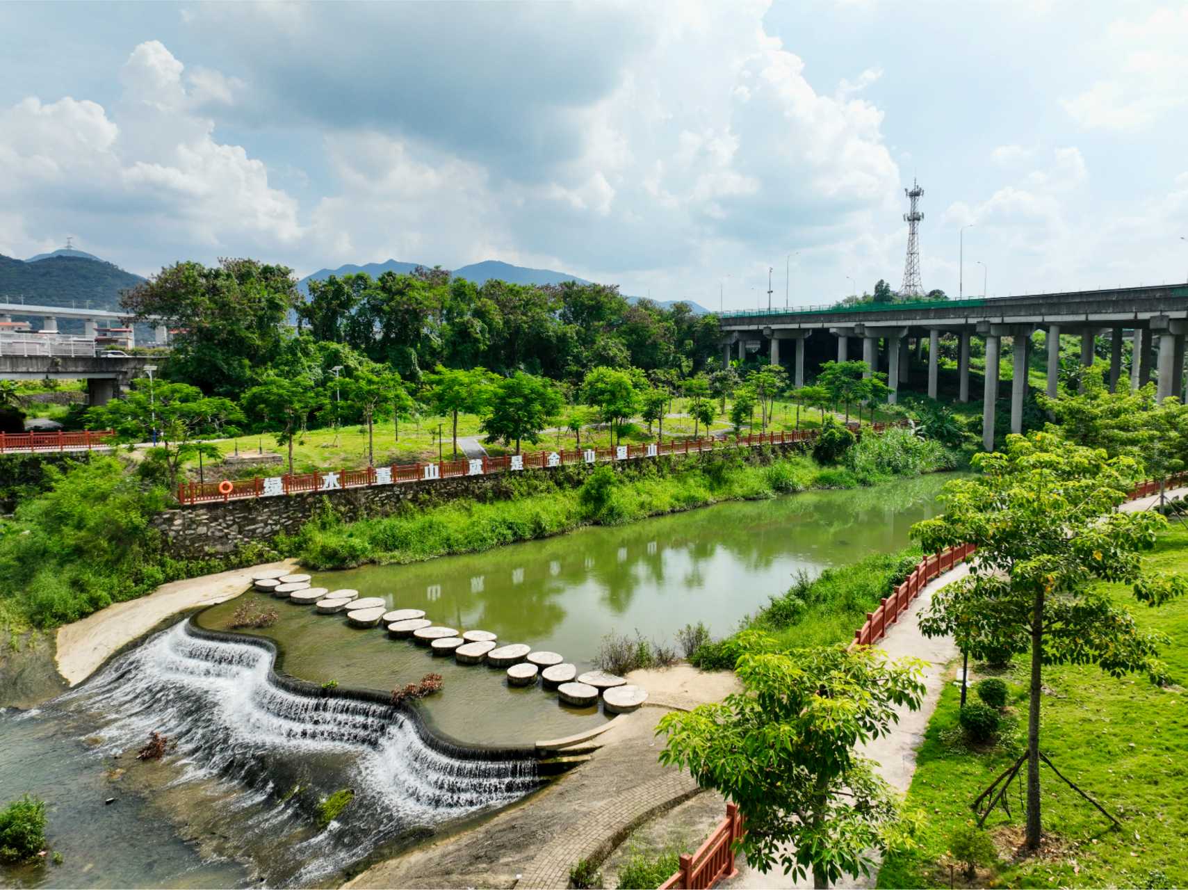 沿X204線駛?cè)霝r林鎮(zhèn)南部,走廊沿線種植苗木約2.15萬株,打造出總長10公里的“一路繁花,綠富同興”景觀帶。君子營村村道旁,荔枝林掩映下的農(nóng)房煥然一新,“君子”主題文化墻、打卡點隨處可見;企嶺村,高速橋下荒地“蝶變”為“河畔紅嶺公園”,健身器材、兒童滑梯、涼亭一應(yīng)俱全,每天傍晚都有村民在此跳廣場舞!耙郧斑@里雜草叢生,現(xiàn)在成了全村最熱鬧的地方。”一名散步的村民笑著說。