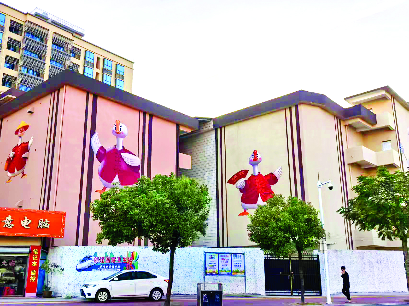 “我們不僅要把道路修寬、環(huán)境扮美,更要讓街區(qū)活起來(lái)、火起來(lái)!眹@業(yè)態(tài)升級(jí)、文化賦能等核心方向,代表們積極建言獻(xiàn)策。目前,規(guī)劃藍(lán)圖正逐步落地——示范主街上,特色品牌IP“功夫鵝”已然成為吸睛亮點(diǎn)。這個(gè)以鵝為主題的IP巧妙融合了當(dāng)?shù)貎纱笪幕鍖殻簢?guó)家級(jí)非物質(zhì)文化遺產(chǎn)莫家拳,以及市級(jí)非物質(zhì)文化遺產(chǎn)瀝林碌鵝制作技藝。身著紅色中式服裝的“功夫鵝”,以廚師、功夫高手、農(nóng)夫等鮮活形象躍然墻繪之上;路邊的鵝元素造型擺件,更讓整條街區(qū)浸潤(rùn)在濃厚的文化氛圍中,既留住了鄉(xiāng)愁記憶,也為商旅發(fā)展注入了獨(dú)特魅力。