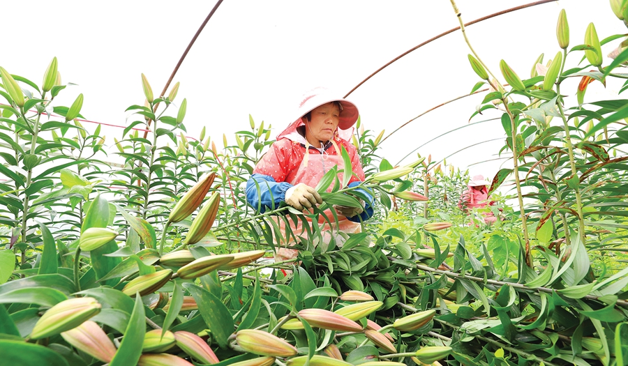 百合花產(chǎn)業(yè)的發(fā)展,帶動了塘尾村及周邊勞動力的就業(yè),最多的時候有30多名本村及周邊村民在基地務(wù)工,促進(jìn)了村民增收。“我在這里做了3年工,在這里干活比打零工穩(wěn)定,收入也不錯。”張阿姨樂呵呵地說,百合花出貨時節(jié)正是農(nóng)閑時候,干活一天可收入150元,臨近春節(jié)加班忙出貨,預(yù)計一個月收入近6000元。