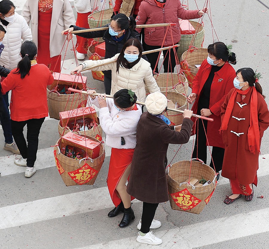 婆婆、妯娌為媳婦分擔,接力挑起籮筐。