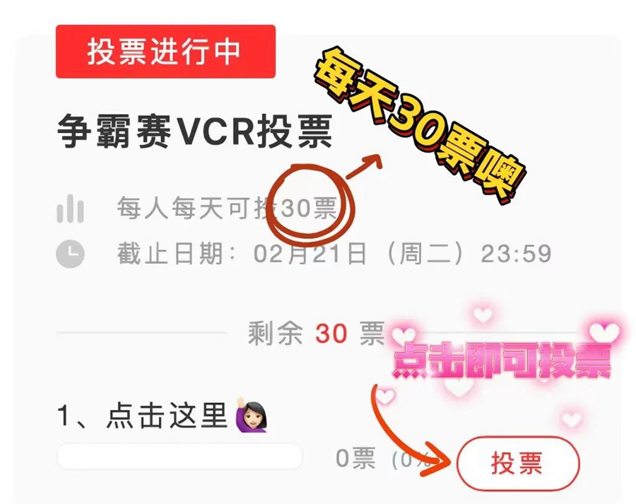 觀看VCR后,點(diǎn)擊“投票”按鈕即可為參賽縣(市、區(qū))點(diǎn)贊,每人每天可為9個(gè)參賽隊(duì)共點(diǎn)30個(gè)贊。
