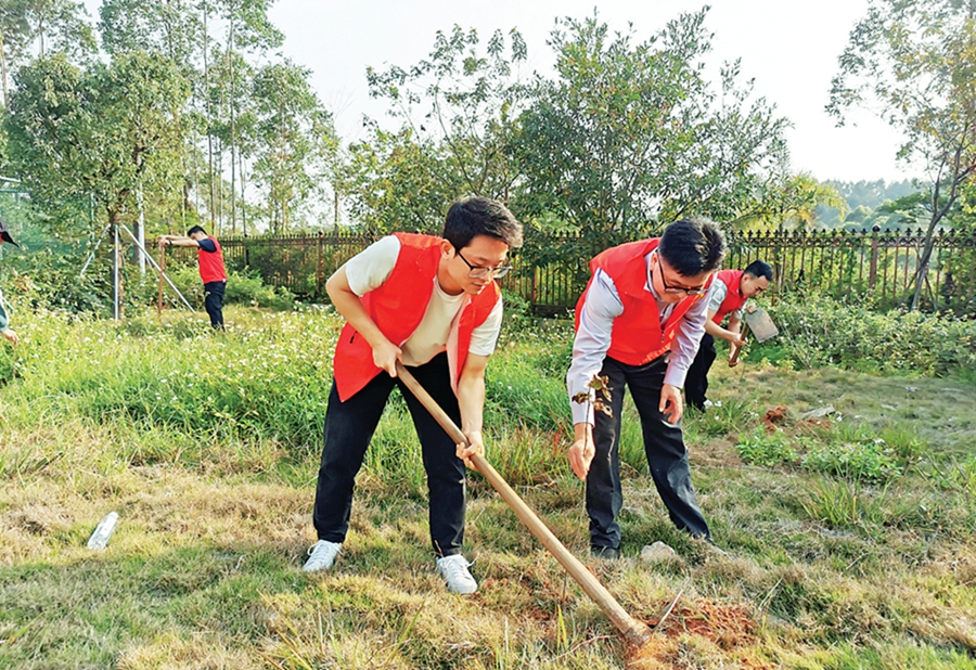 當(dāng)天下午,在博羅縣長(zhǎng)者安養(yǎng)中心的花園里,一群身穿紅馬甲的志愿者分散在草坪上,或兩人一組,或三五成群,揮鍬鏟土、扶樹(shù)正苗、提水澆灌,合力栽下一批樹(shù)苗,現(xiàn)場(chǎng)一派熱火朝天的忙碌景象。經(jīng)過(guò)一番辛勤勞動(dòng),200棵新種下的樹(shù)苗迎風(fēng)挺立,點(diǎn)綴著綠茵茵的草坪,在和煦的陽(yáng)光中展現(xiàn)出蓬勃生機(jī)、滿(mǎn)滿(mǎn)春意,形成一道靚麗的風(fēng)景線。