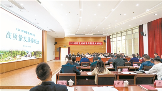 座談會現(xiàn)場,博羅縣委副書記、縣長邱志彪強調(diào),文旅產(chǎn)業(yè)高質(zhì)量發(fā)展要立足于聯(lián)農(nóng)帶農(nóng)、惠農(nóng)富農(nóng),與鄉(xiāng)村振興相結(jié)合,切實將產(chǎn)業(yè)發(fā)展成果惠及博羅群眾;要堅持文化引領(lǐng)、產(chǎn)業(yè)融合,充分發(fā)揮文旅產(chǎn)業(yè)關(guān)聯(lián)度強、融合度高的特點,推動與農(nóng)業(yè)、工業(yè)、文化產(chǎn)業(yè)融合發(fā)展,增添發(fā)展新動能,帶動創(chuàng)業(yè)就業(yè),助推博羅經(jīng)濟社會發(fā)展;要立足博羅歷史文化底蘊,講好博羅故事,做好“留根”“鑄魂”工作,進行優(yōu)勢資源整合,打造博羅特色文旅品牌;相關(guān)職能部門要做好文旅產(chǎn)業(yè)發(fā)展服務(wù)和保障工作,積極培育壯大市場主體,推動文化旅游產(chǎn)業(yè)轉(zhuǎn)型升級,健全現(xiàn)代旅游人才培養(yǎng)體系,開創(chuàng)博羅文旅產(chǎn)業(yè)高質(zhì)量發(fā)展新局面。