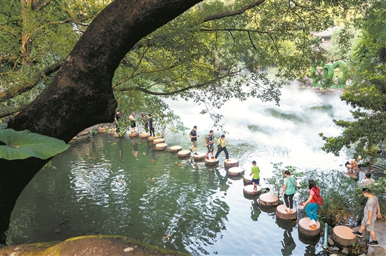 在五礦哈施塔特文旅小鎮(zhèn),游客可以全場景沉浸式體驗演藝項目《女王的盛宴》;在羅浮山景區(qū),感受流光溢彩的3D夢幻水秀;在上良村民宿,打卡位于山湖之間的網(wǎng)紅書吧……近年來,游客能明顯感受到,在以往傳統(tǒng)景區(qū)的常規(guī)項目基礎(chǔ)上,博羅旅游體驗項目越來越豐富。這得益于當(dāng)?shù)爻掷m(xù)推動文旅消費項目升級,同時加大力度推動觀背村、明清九街、天虹商圈打造歷史文化街區(qū)、文化創(chuàng)意街區(qū)、夜間消費集聚區(qū),吸引并留住游客。