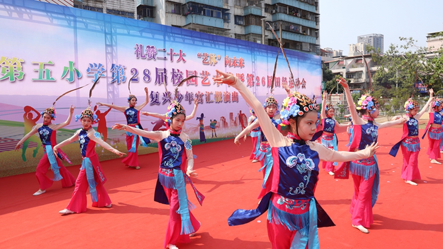 “此次校園藝術(shù)節(jié)的成功舉辦,與博羅縣大力推進(jìn)‘復(fù)興少年宮’建設(shè)分不開!辈┝_縣第五小學(xué)校長黃艷珊告訴記者,2021年,在縣新時代文明實踐中心的指導(dǎo)下,學(xué)校成功創(chuàng)建了采薇書室、童創(chuàng)未來、非遺工作站等活動育人陣地,并精心設(shè)計了主題教育、紅色研學(xué)、經(jīng)典傳唱等16類活動項目,成立了剪紙非遺工作站,并先后組織開展了“學(xué)習(xí)二十大 奮進(jìn)新征程”新時代好少年微宣講、青少年書法比賽、“非遺進(jìn)校園 巧手頌廉潔”等活動,極大豐富了學(xué)生的精神文化生活,點綴孩子們的多彩童年。