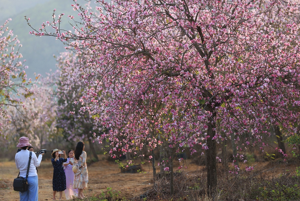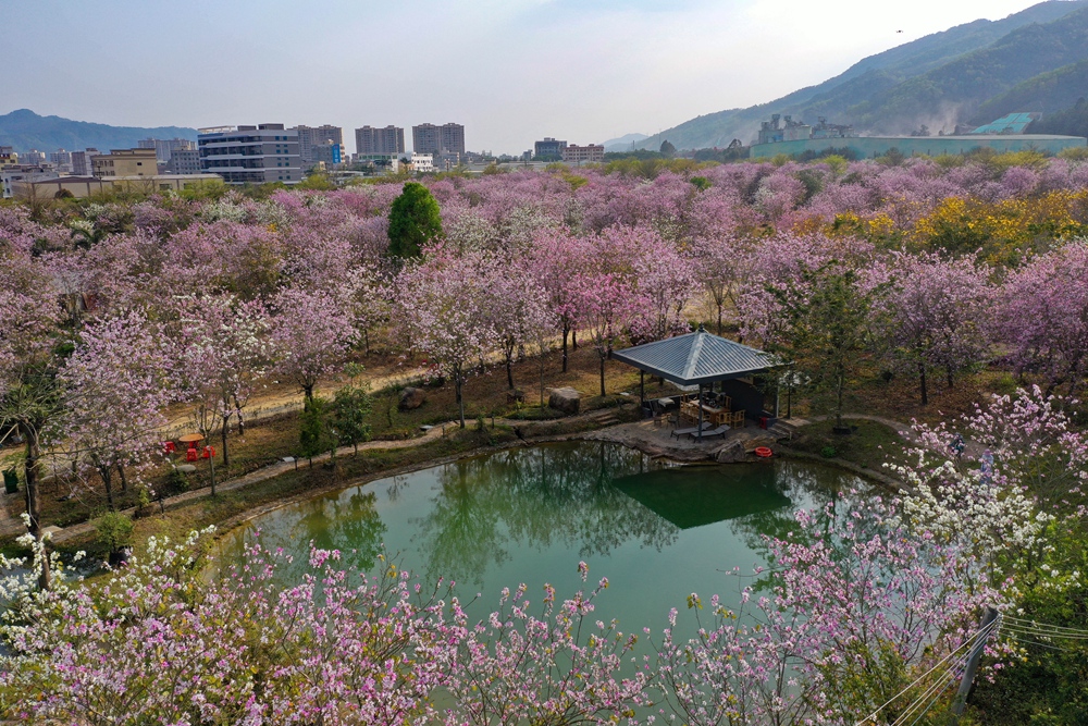 近日,博羅縣泰美鎮(zhèn)棕意園林第五基地的300畝宮粉紫荊進入盛花期。慕名而來的游客絡繹不絕,暢游在花海之間,陶醉在花香之中,或拍照留念,或漫步小徑、花間愜意悠閑,花香飄逸,沁人心脾。