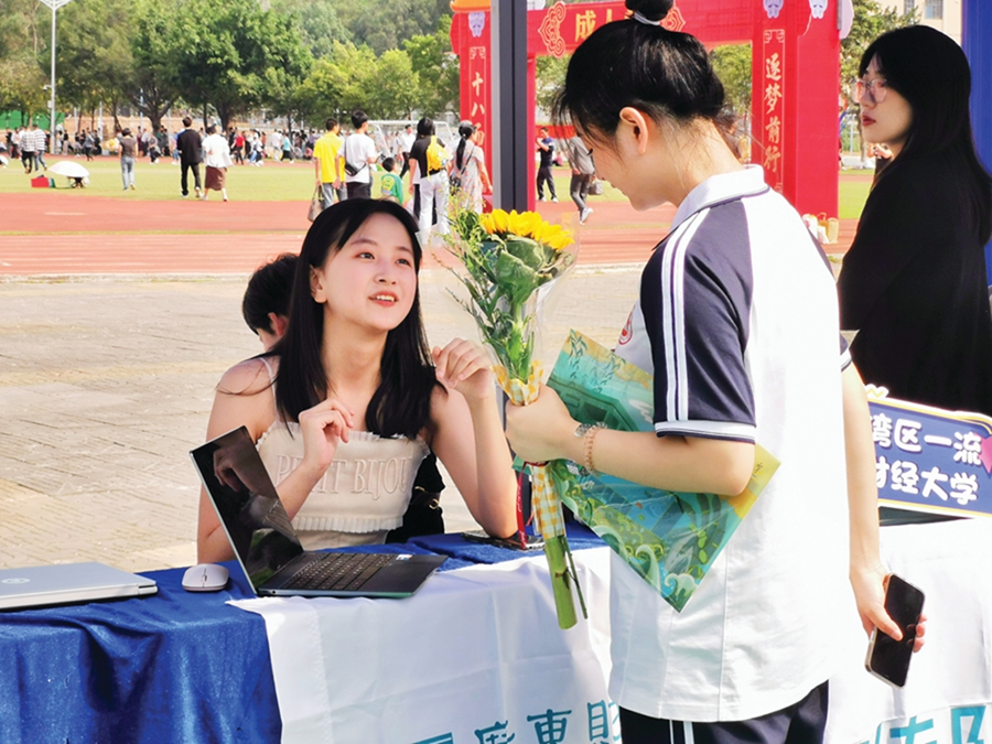高校學(xué)長學(xué)姐耐心答疑解惑。 惠州日?qǐng)?bào)記者侯婉怡 李燕文 通訊員楊舒婷 攝