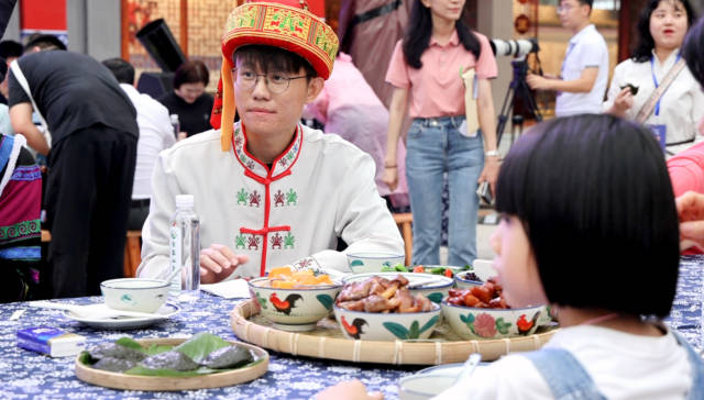 隨后,極具畬族特色的長桌宴和篝火晚會精彩上演。在長桌宴上,烏米飯、糍粑等畬族特色小吃別有一番風(fēng)味,讓賓客體驗滿滿的畬式祝福。一堆熊熊燃燒的篝火,點燃畬族小學(xué)的夜景,也將畬族文化節(jié)的氣氛推向高潮。
