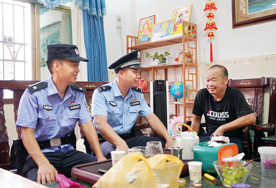 “走訪不光是聊家常,還要為村民解難題!睆堄罘f,蝦塱村轄區(qū)有不少留守老人,對于如何更新戶口身份證、辦理居住證、辦理無犯罪證明等十分陌生。他便借助走訪契機,耐心地為村民解答、手把手教學。在走訪中,張宇帆發(fā)現(xiàn)村內(nèi)監(jiān)控存在死角,于是便立馬向上級部門反映,“監(jiān)控很重要,不僅在案件發(fā)生時提供線索、證據(jù),最主要是平時能起到威懾作用!比缃瘢r塱村監(jiān)控死角已被覆蓋,村民平安更有保障。
