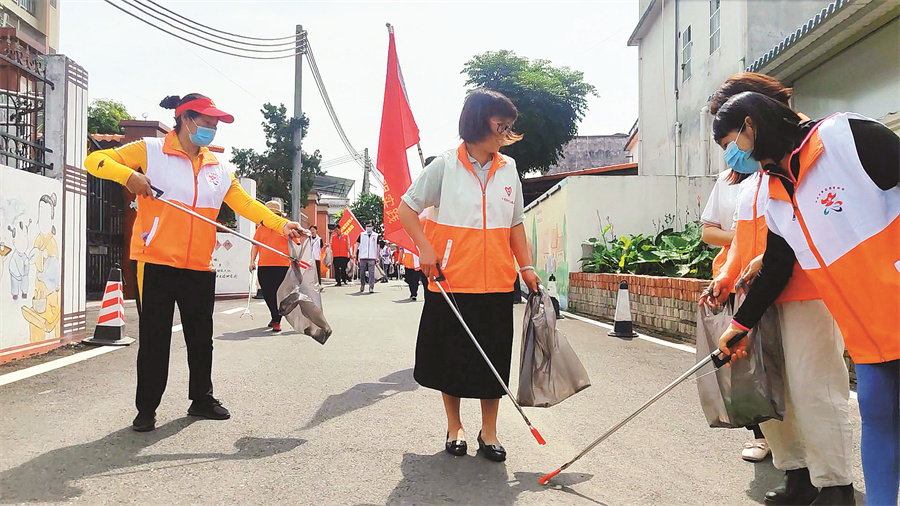 市民在觀背村進(jìn)行公益撿跑;葜萑請笥浾弑R泓宇 攝