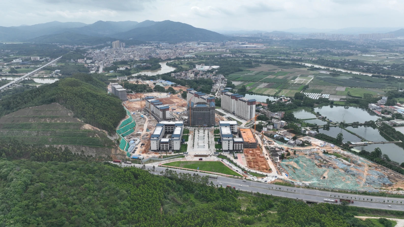 抓緊建設中的廣州理工學院惠州校區(qū)鳥瞰圖。