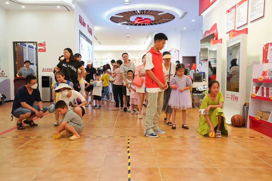 顛球障礙賽、雙人跳繩、抖抖球大作戰(zhàn)……5月28日上午,在江南社區(qū)新時代文明實踐站,“童心向黨,快樂成長”羅陽街道江南社區(qū)迎“六一”游園活動舉行。現(xiàn)場,23項豐富多彩的活動讓家長與孩子們共度了一段愉快的親子時光!白詮纳鐓^(qū)有了新時代文明實踐站,就經(jīng)常開展各種文明實踐活動。很有意思也很有意義,孩子經(jīng)常吵著要參加。”曾媽媽笑著說。