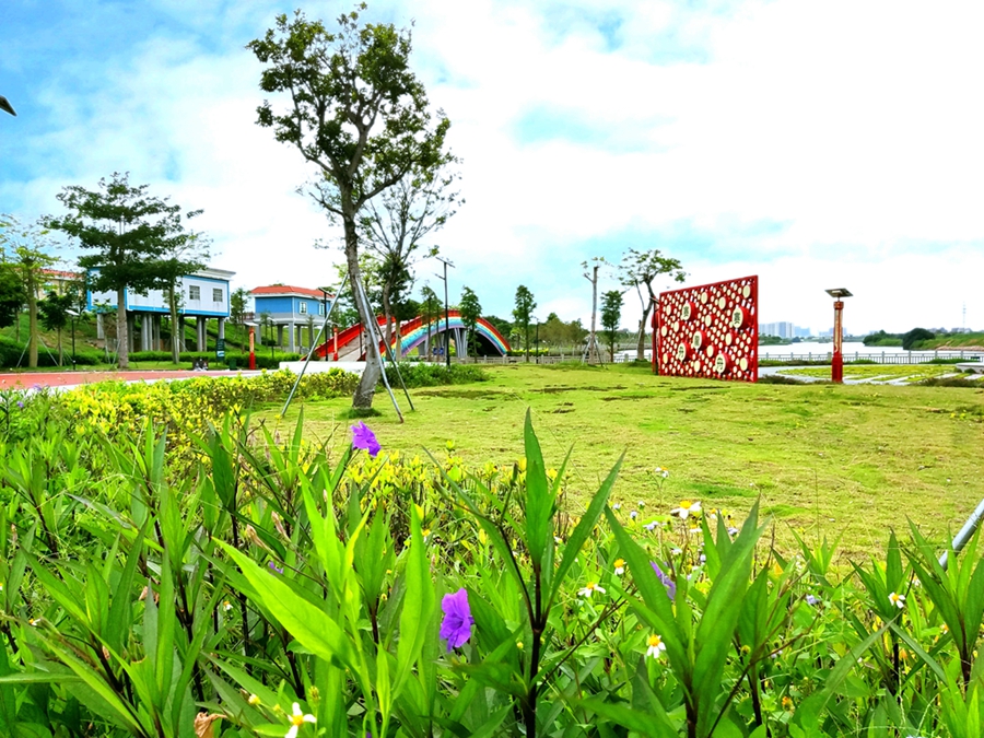 在紅旗二路,綻放的鮮花為道路增添了色彩;在東坡公園,錯(cuò)落有序的樹木與彩虹橋互相映襯;在沙河旁,盈盈的河水與岸邊的花草相得益彰……一幅幅美麗的畫面勾勒出綠美石灣的夏日風(fēng)景圖。