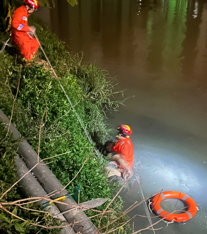 現(xiàn)場(chǎng)消防了解到,一名中年男子已經(jīng)跳下河。2名熟悉水性的消防員立即穿戴好個(gè)人防護(hù)裝備,系好救生安全繩、攜帶救生圈迅速下水搜救。