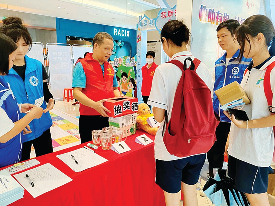 現(xiàn)場通過游戲互動宣傳救助管理工作。 惠州日報記者李燕文 通訊員藍昊 攝