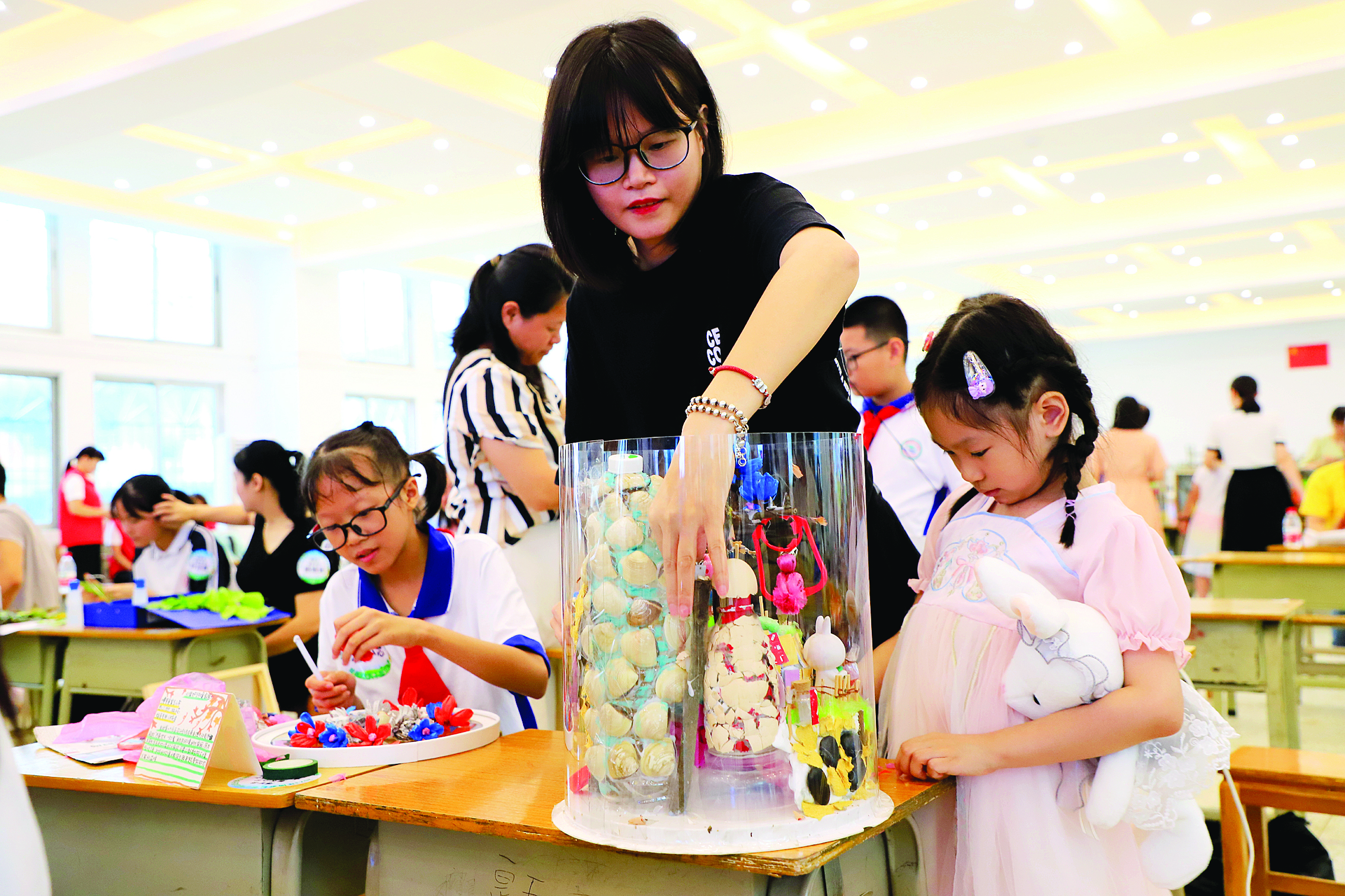 參賽選手在制作手工作品;葜萑請(bào)記者李燕文 特約通訊員徐景雨 攝