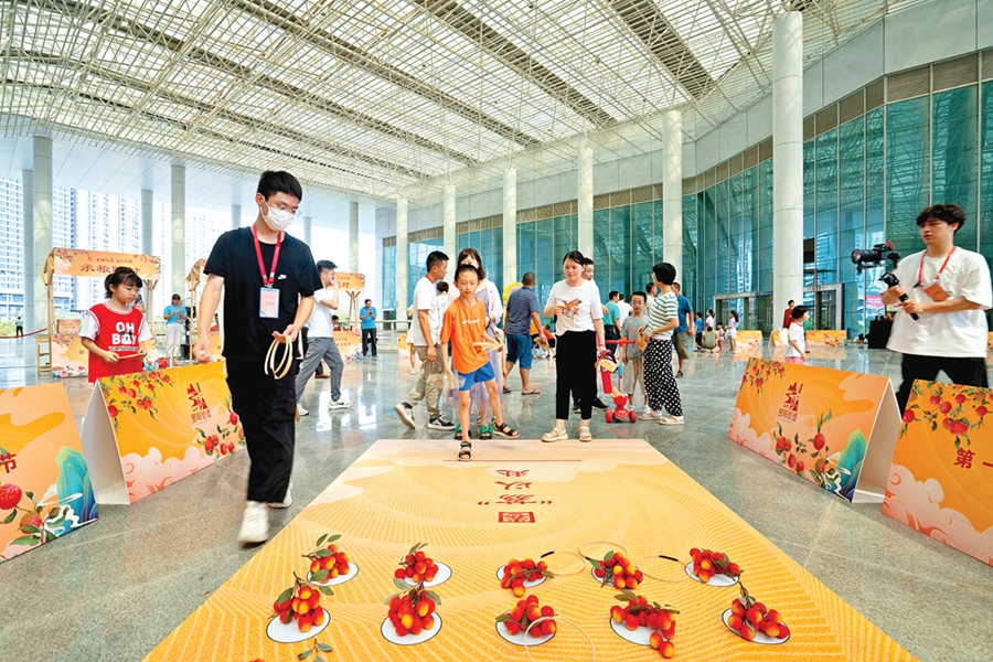 除了品嘗區(qū),本次活動(dòng)還設(shè)置有荔枝展示區(qū)、文創(chuàng)產(chǎn)品展示區(qū)以及集章游戲和抽獎(jiǎng)、投票環(huán)節(jié)。在展示區(qū)內(nèi),俏皮可愛的荔枝IP展板與不同品種的荔枝介紹吸引了眾多市民駐足、拍照。在游戲區(qū),市民有序排隊(duì)體驗(yàn)“砥荔前行”“一臂之荔”“再接再荔”等趣味游戲,現(xiàn)場(chǎng)一片歡樂氛圍。