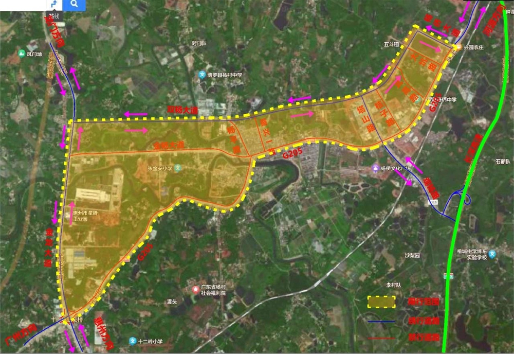 雙楊大道、楊僑大道、金龍大道、國道G205合圍以內區(qū)域和國道G205路段(起點金龍大道至終點楊僑大道)限行車輛禁止在限行時間內通行。