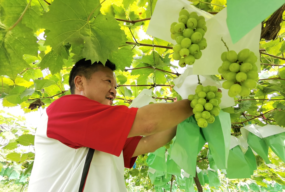 而今,在葡萄園里,一串串陽光玫瑰葡萄懸掛在葡萄藤上,在陽光的照射下,猶如翡翠般通透,讓人垂涎欲滴。摘一顆放入嘴里,清甜多汁、果香肉脆,淡淡的玫瑰香味充滿整個口腔,迅速征服了舌尖上的味蕾。技術(shù)人員介紹,除了這里的山水滋養(yǎng)外,有機(jī)的種植方式,也讓這里的陽光玫瑰葡萄品質(zhì)更優(yōu)。