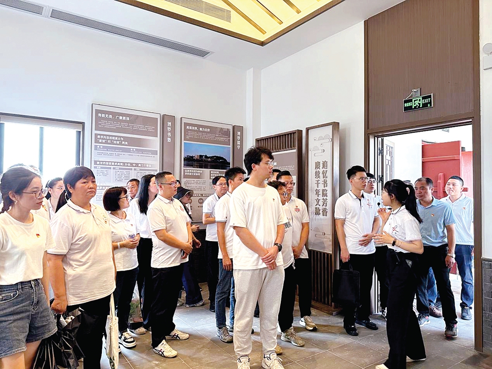 長寧鎮(zhèn)青年黨員講解員介紹青云書室;葜萑請笥浾呃钛辔 通訊員蔣美琴 攝