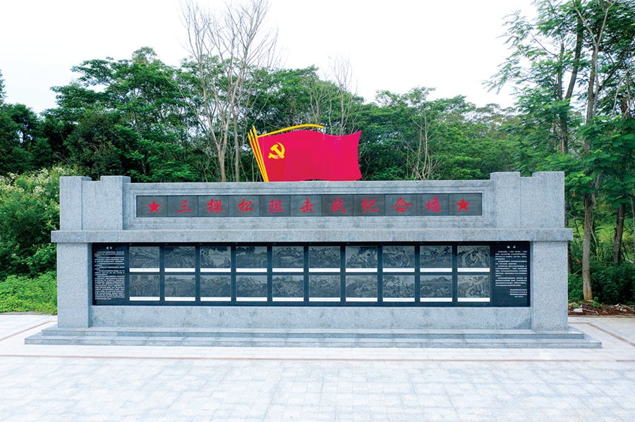 三棵松阻擊戰(zhàn)紀(jì)念墻。 惠州日?qǐng)?bào)記者湯渝杭 攝
