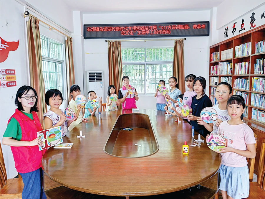 孩子們展示唐詩貼畫手工作品;葜萑請笥浾咧禧愭 通訊員朱國慶 攝