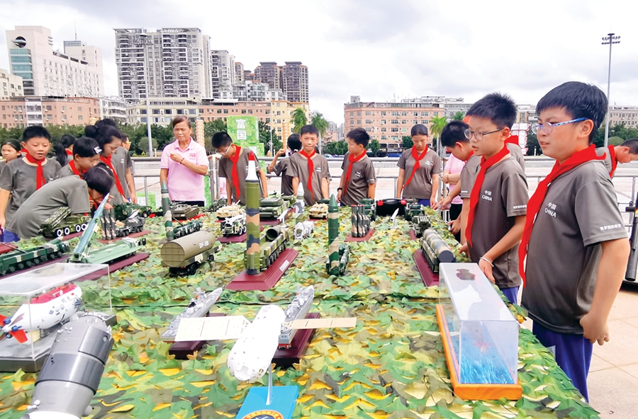 每年9月的第三個星期六是全民國防教育日。9月15日,博羅縣在縣城文化廣場舉行“踔厲奮發(fā)強國防 勇毅前行向復(fù)興”第23個全民國防教育日活動,通過國防知識展覽長廊、軍事項目互動體驗、軍事隊列動作訓(xùn)練等形式,普及國防教育知識,增強群眾國防觀念。這是學(xué)生在博羅縣城文化廣場觀看武器模型。