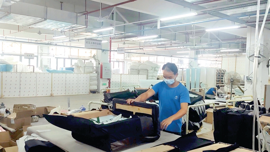 走出該車間,記者跟隨組裝好的物料一起來到了另一棟生產(chǎn)樓的拼裝車間。經(jīng)過拼裝、質(zhì)檢等環(huán)節(jié),一套套沙發(fā)成品將從這里銷往全國各地。