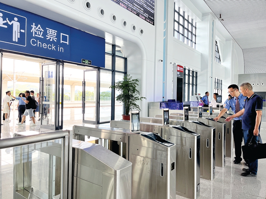 旅客刷身份證進(jìn)入站臺。 惠州日報記者黃桃 攝