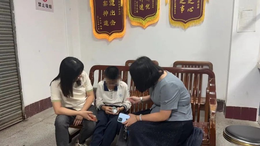 民警將小劉安全帶回派出所并通知家長和校方,學(xué)校校長、班主任第一時(shí)間聞?dòng)嵹s來,小劉媽媽見到小劉的那一刻,聲淚俱下,連連向警察和學(xué)校領(lǐng)導(dǎo)致謝,將自己的孩子安全送回身邊。