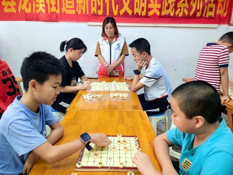 為傳承中華傳統(tǒng)文化,讓青少年感受棋類文化的獨(dú)特魅力,博羅縣龍溪街道新時(shí)代文明實(shí)踐所聯(lián)合鄉(xiāng)村少年宮、耕心文化學(xué)堂、志愿者協(xié)會在耕心文化學(xué)堂開展“以棋會友 ‘棋’樂融融”主題活動。在象棋教學(xué)中,老師帶領(lǐng)孩子們走進(jìn)了奇妙的象棋世界,用簡單而富有童趣的語言,巧設(shè)情境,將象棋知識與孩子們熟悉的事物緊密聯(lián)系起來,由易到難循序漸進(jìn)。隨后,孩子們兩兩結(jié)對進(jìn)行實(shí)戰(zhàn)對弈,把學(xué)到的知識應(yīng)用到棋盤上。只見小棋手們一個個全神貫注、沉穩(wěn)思索,在對弈間獲得快樂。此次活動不僅能陶冶青少年的情操,更能促進(jìn)他們觀察、分析判斷的能力,培養(yǎng)青少年勝不驕、敗不餒的良好心理素質(zhì)。
