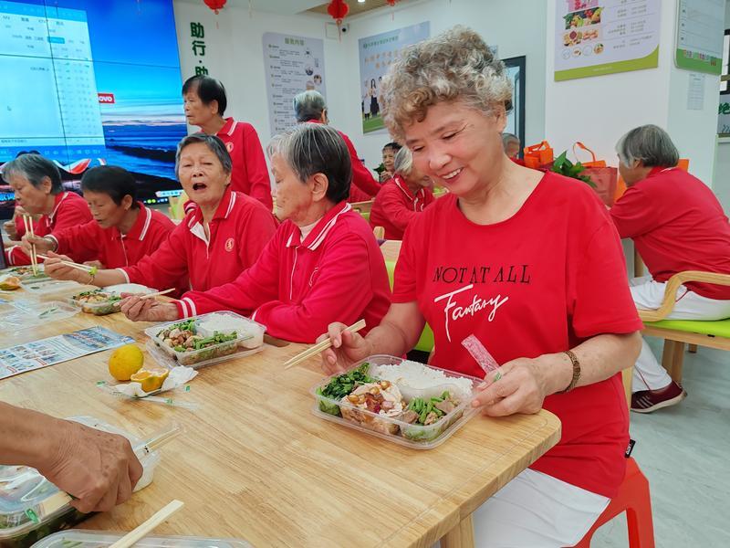 老人在觀華社區(qū)長者服務(wù)站用餐。 惠州日報記者朱麗婷 通訊員羅陽宣 攝