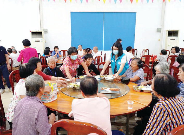 在里波水村長者飯?zhí),長者圍坐在一起就餐。 惠州日報(bào)記者李燕文 通訊員楊衍文 魏杰智 攝
